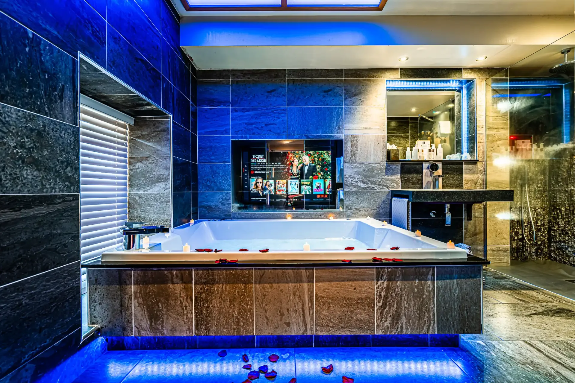 Enjoy complete privacy like never before. With a central location, The Hideout Boutique House is situated within a two-minute walk of Bowness on Windermere. Our boutique house is unique and a private haven for those seeking a special and unforgettable self-catering getaway in complete privacy. This luxury self-catering accommodation is set over three floors, with its own cinema area, Europe’s largest spa bath and so much more.