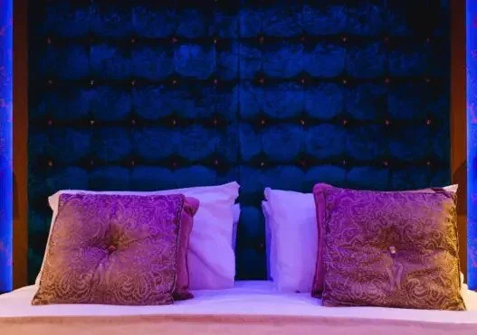 Tempting super king-size sumptuous bed and anti-allergy duvet with pure cotton bedding. Seductive and passionate decor to relax and unwind. Plus a bedroom TV and mood lighting.